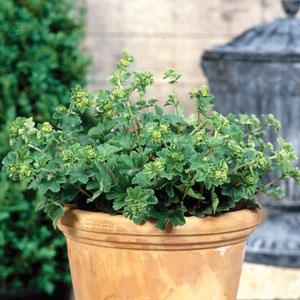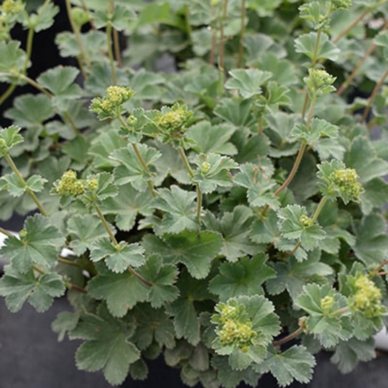 Alchemilla Alma ist eine kleinere Staude mit malerischen, weichen, leicht behaarten Blättern. Im Morgentau fangen sich die Wassertropfen nostalgisch auf ihnen. Der Wuchs ist kompakt und die Blüten sind gelb-orange und erscheinen im Frühsommer.</p