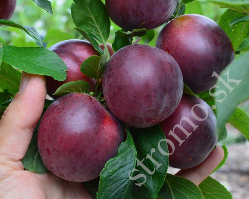 Die Früchte sind groß, im Durchschnitt 50-70 g schwer, rund, die Schale fest, glänzend, rötlich-violett bis schwarz, mit hellen Lentizellen bedeckt. Die Früchte eignen sich für den Frischverzehr und für die Verarbeitung. Während des Transports werden sie nicht gequetscht. Sie verändern ihre Farbe nicht, wenn sie im Kühlschrank aufbewahrt werden, und ihre Qualität bleibt bis zu drei Wochen erhalten.