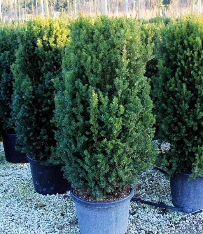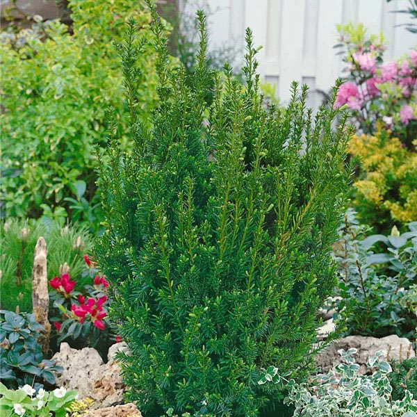 Die langsam wachsende Eibe wird 2 bis 3 Meter hoch und 0,5 bis 1,5 Meter breit. Die Eibe hat tiefgrüne, glänzende Nadeln, die Form des Strauches ist säulenförmig, später spreizt sie sich leicht nach oben hin. Über den Winter nehmen die glänzenden Teile des Baumes eine goldene Färbung an.