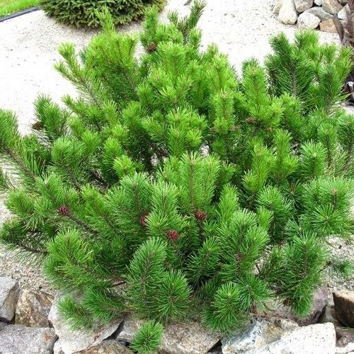 Gewöhnlich wächst er in Gebirgsregionen, hat einen halbkugelförmigen Wuchs, wird 0,5-1 m hoch und ist ein beliebter Zwergkoniferenbaum, der sich vor allem wegen seines Wuchses für Steingärten und Blumenbeete eignet, bodenschonend ist und auffallend grüne Nadeln hat.