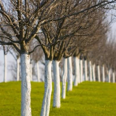 Baumstammfarbe ist eine biologisch abbaubare Farbe zum Schutz von Baum- und Strauchstämmen. Die weiße Farbe reflektiert die Sonnenstrahlen und verhindert so eine unerwünschte Aufheizung des Stammes an sonnigen Wintertagen. Dadurch wird der Stamm vor Temperaturschwankungen geschützt, die zu Frostrissen führen können. Auch das Risiko, dass Pilzkrankheiten den Baum befallen, wird dadurch deutlich verringert. Der Stammanstrich schränkt keine der lebenswichtigen Funktionen des Baumes ein und ist für Tiere völlig ungefährlich. Bei rechtzeitiger Anwendung hilft der Anstrich, den Befall und das Auftreten bestimmter Schadinsekten sowie das Aufkommen von Moosen und Flechten zu verhindern. Der Anstrich kann auf allen Arten von Obstbäumen und Sträuchern sowie auf allen anderen Arten von Zierbäumen verwendet werden.