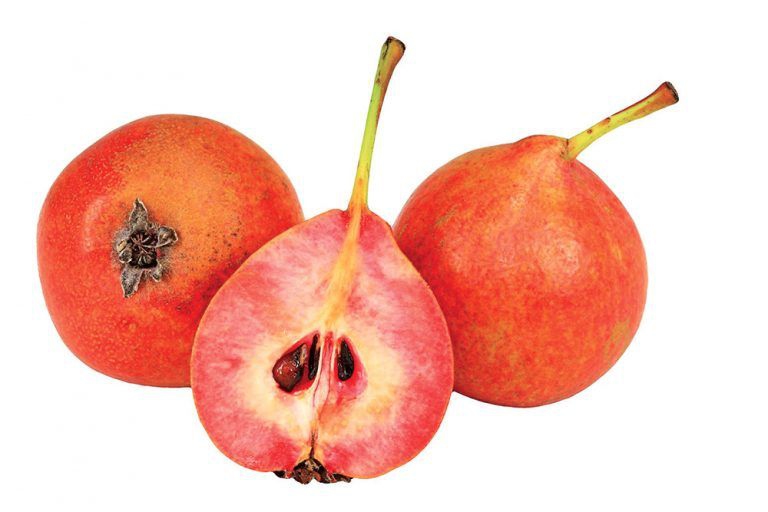 Früchte: klein, rund, mit rosa bis rotem Fruchtfleisch bei Reife