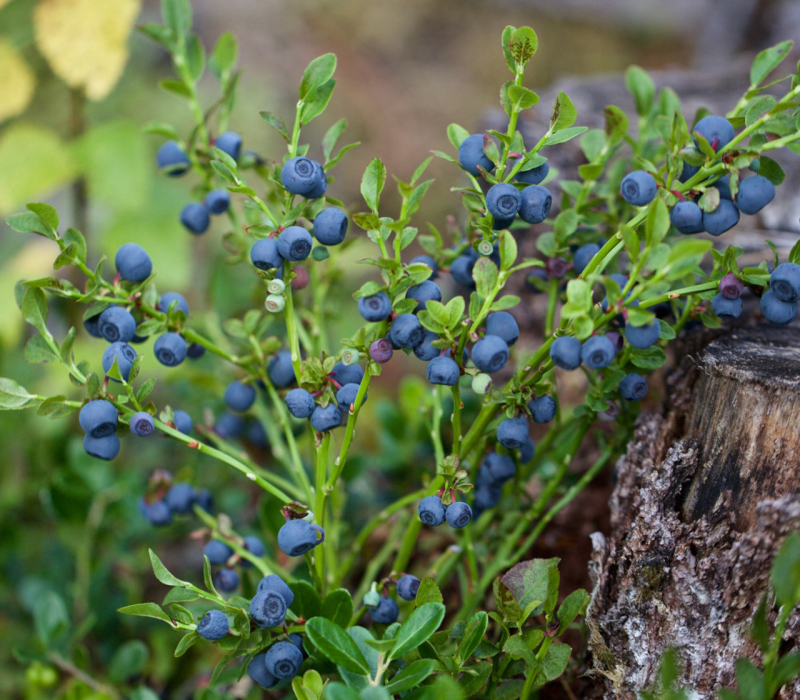Die Blaubeere ist ein stark verzweigter Strauch, der bis zu 50 cm hoch wird. Die Früchte sind schwarz mit einem graublauen Wachsüberzug, rund, leicht abgeflacht, vielsamig und sehr wohlschmeckende Beeren. Die Heidelbeere ist adstringierend und entzündungshemmend. Sie wird vor allem bei Durchfall im Kindesalter, aber auch bei mit Durchfall verbundenen Darmerkrankungen im Erwachsenenalter, bei der Behandlung von Diabetes, Blasen- und Rachenentzündungen sowie bei einigen Hautkrankheiten eingesetzt.
