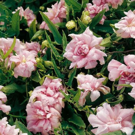 Calystegia hederacea Multiplex ist eine mehrjährige, kletternde Pflanze, die in Japan beheimatet ist, mit schönen gefüllten Blüten in leuchtendem Rosa. Die Blüte ähnelt einer Rose oder Nelke. Sie blüht von Juni bis September. Sie eignet sich für warme, sonnige Standorte mit feuchtem, nassem Boden. Eine Decke ist für den Winter geeignet. Sie wächst jedes Jahr aus dem Boden, daher sollten die Triebe im Frühjahr dicht über dem Boden zurückgeschnitten werden. Die Höhe der Pflanze beträgt 1,5 - 2 m. Eine vertikale Stütze ist erforderlich.