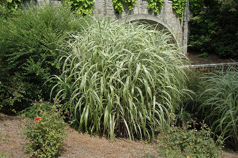Miscanthus sinensis Cabaret - Dies ist eine der dominanten und hohen Zierpflanzen, die einen perfekten Solitär oder Hintergrund für ein gemischtes Beet bildet. Die Blätter zeichnen sich durch einen gelben Mittelstreifen aus. Sie wächst kräftig und bildet dichte Büschel, die bis zu 2,5 m hoch werden können. Junge Exemplare benötigen einen Winterschutz.
