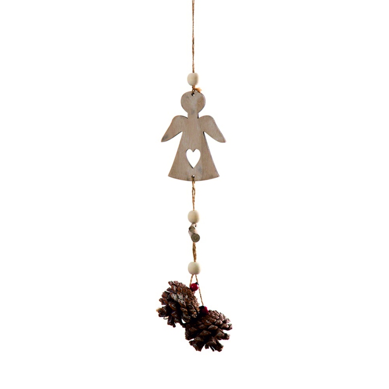 Holzdekoration mit Engel zum Aufhängen mit Tannenzapfen