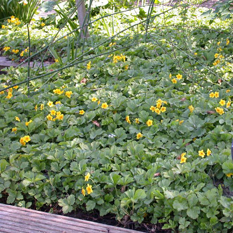 Waldsteinia ternata ist eine niedrig wachsende Staude. Sie bildet schöne Teppiche aus tiefgrünen Blättern und blüht im Frühjahr mit goldgelben Blüten. Sie gedeiht am besten im Halbschatten bis Schatten. Sie bevorzugt meist mäßig feuchte Böden, kann aber auch kurzzeitige Trockenheit vertragen. Es ist eine immergrüne Pflanze. Wallflower wirkt dann als Bodendecker, der das Unterholz abschließt und das Wachstum von Unkraut verhindert.