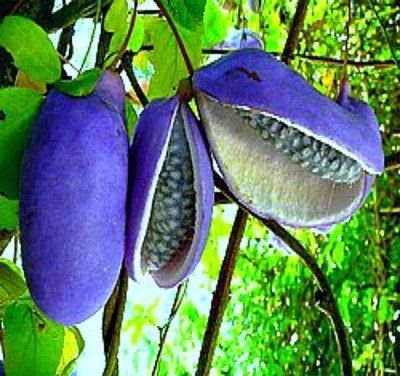Akebia trifoliata, mit dem lateinischen Namen Akebia trifoliata, ist ein Mitglied der Familie der Lardizabalaceae - der Coccolithoptera. Ursprünglich ist sie in Ländern wie China, Japan und Korea beheimatet. Akebia ist eine ausladende Liane mit typischen dreilappigen Blättern, die sie von der fünflappigen Akebia unterscheiden. Sie erreicht eine Höhe von 5-8 m und wächst recht schnell, mit jährlichen Zuwächsen von 1 bis 2 m. Die Blätter färben sich im Herbst burgunderrot und fallen im Winter ab. Von April bis Mai erscheinen kleine, violette Blüten in Büscheln mit einem süßen, an Zimt erinnernden Duft. Aus den Blüten entwickeln sich später die wirklich ungewöhnlichen rosa-purpurnen Früchte mit einer leichten bläulichen Färbung. Sie zeichnet sich durch ihre dickere Schale und vor allem durch ihre gurkenähnliche Form aus, und ihr köstlicher Geschmack erinnert an eine Banane.