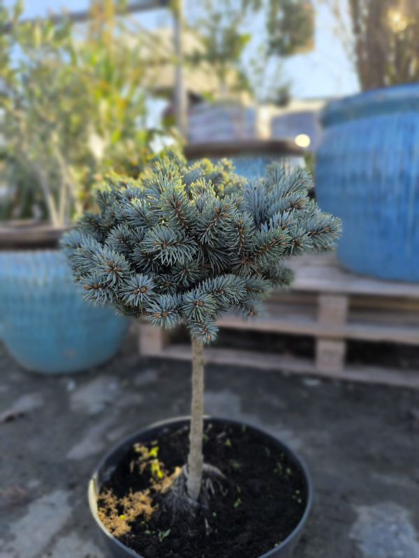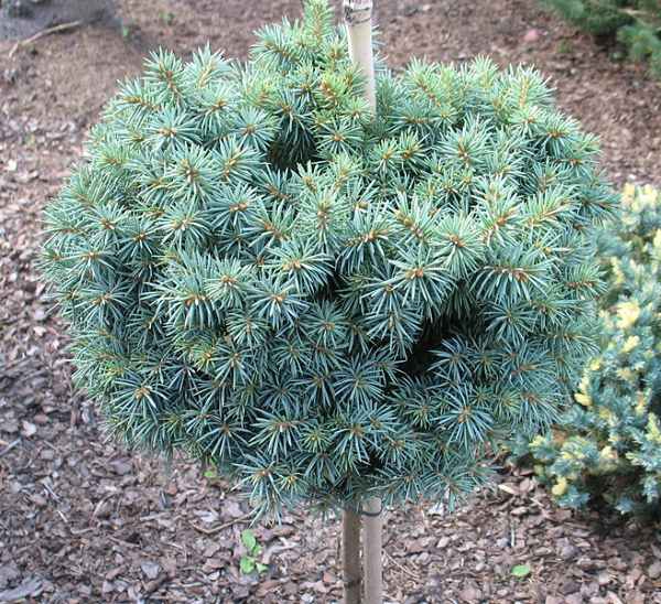 Sanft wachsende Fichte, interessant durch ihre blau gefärbten Nadeln. Ihre Krone wächst von Natur aus kugelförmig. Ihr langsamer Wuchs macht sie auch für Steingärten geeignet. Diese Sorte ist eher eine Rarität und wird nur selten in Gärten gefunden.