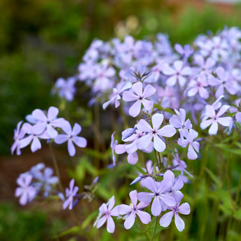 Die Sorte "Clouds of Perfume" ist, wie der Name schon vermuten lässt, ein duftender Phlox, der Ihre schattigen Plätze im Garten oder unter den Bäumen mit schönen hellblauen Blüten verschönert, die in großer Zahl auf den dichten, kompakten Teppichen blühen, die die Pflanze bildet. Er blüht von Mai bis Juni mit fünfblättrigen Blüten.