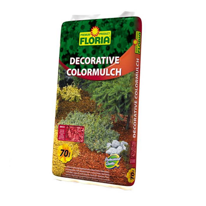 FLORIA Ziermulch ist ein sehr dekoratives und mulchendes Material aus entrindetem Nadelholz. Er zeichnet sich durch eine lange Lebensdauer auf Blumenbeeten aus. Er wird in vier Farbtönen hergestellt - braun, ziegelrot, orange und gelb. Die verwendeten Farben werden aus natürlichen Pigmenten hergestellt und sind daher nicht umweltschädlich. Neben ihrer dekorativen Funktion verhindert sie auch das Austrocknen des Bodens. Sie schützt die Bodenoberfläche vor übermäßiger Feuchtigkeitsverdunstung und Unkrautbefall und ist außerdem ein hervorragendes dekoratives Element in Ihrem Garten. Durch die Kombination verschiedener Farben können Sie unterschiedliche Muster erzeugen.