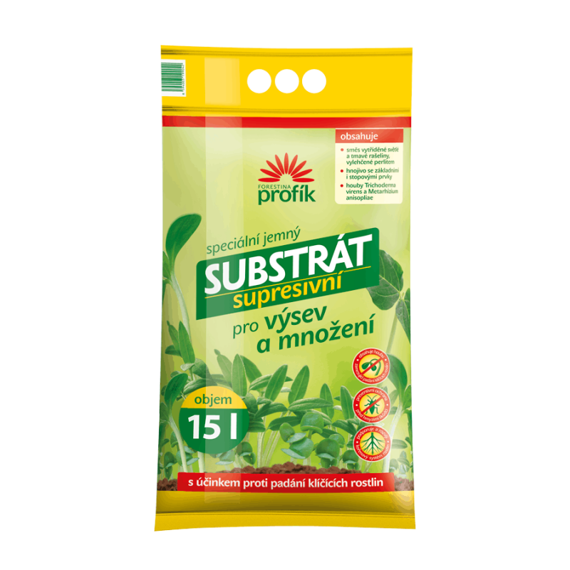 Suppressives Aussaatsubstrat ist speziell für die Aussaat und Vermehrung von Pflanzen konzipiert. Es ist sowohl für die Aussaat als auch für das Pikieren von Pflanzenstecklingen geeignet. Das Substrat ist mit einem Dünger mit essentiellen und Spurennährstoffen im erforderlichen Umfang angereichert, was sich positiv auf die reibungslose Bewurzelung von Stecklingen und die Keimung von Pflanzen auswirkt. Das Substrat ist mit den Pilzen Trichoderma virens und Metarhizium anisopliae angereichert, die die Reinheit des Substrats gewährleisten. Der Pilz Trichoderma virens unterdrückt aktiv die Erreger wichtiger Pilzkrankheiten, einschließlich phytopathogener Pilze der Gattungen Fusarium, Pythium, Sclerotinia und Rhizoctonia. Diese phytopathogenen Pilze verursachen das Absterben und den Tod von keimenden und sich entwickelnden Pflanzen, weshalb die Verwendung eines mit einem antagonistischen Organismus angereicherten Aussaatsubstrats ein wichtiges präventives Element für den Schutz von Sämlingen darstellt; gleichzeitig wirkt sich das Vorhandensein dieses Pilzes positiv auf die Bewurzelung und die Entwicklung der Pflanzen aus; die Pflanzen reagieren auf das Vorhandensein dieses Organismus mit einer so genannten induzierten Resistenz, d. h. einem Zustand erhöhter Widerstandsfähigkeit gegenüber einer Vielzahl von Schadorganismen. Außerdem ist sie mit dem Pilz Metarhizium anisopliae angereichert, der eine wirksame Vorbeugung gegen Insekten darstellt, die keimende und transpirierende Pflanzen schädigen. Das Hauptziel der absichtlichen Beimpfung des Substrats mit diesem nützlichen Organismus besteht darin, die Keimlinge verschiedener Arten von Setzlingen und Zierpflanzen vor Schädlingen zu schützen, die das Wurzelsystem der Pflanzen angreifen. Zum Beispiel gegen die Larven von Drahtwürmern, Krätze-Larven, Maulwurfsgrillen,... Neben den Schädlingsarten, die ausschließlich im Boden vorkommen, ist auch die Wirkung des Pilzes auf Schadinsekten, die sich nur zum Teil im Boden entwickeln (z.B. Rüsselkäfer), von Bedeutung.