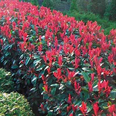 Ein sehr beliebter, immergrüner Strauch, der im Austrieb eine purpurrote Blattfarbe hat, die sich zu Bronze und dann zu Dunkelgrün verändert. Er bevorzugt volle Sonne, Halbschatten und nährstoffreichen Boden. Er verträgt keine Staunässe und eignet sich hervorragend zur Heckenbepflanzung.