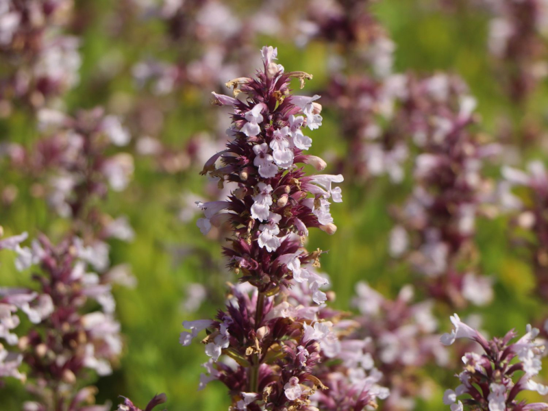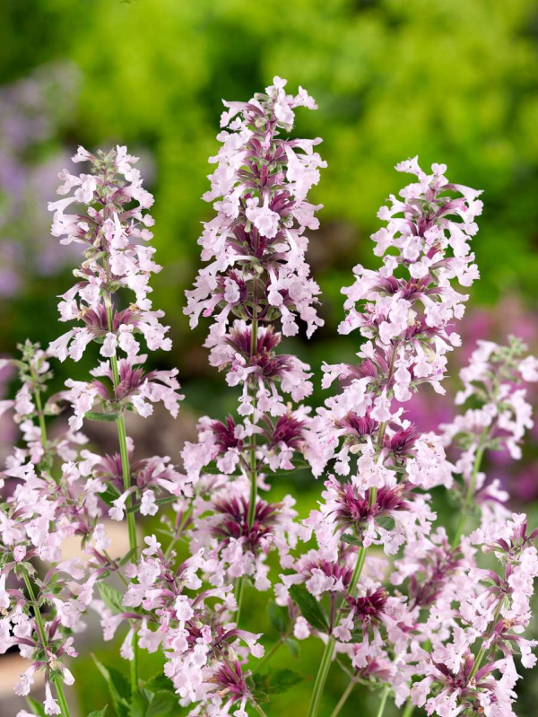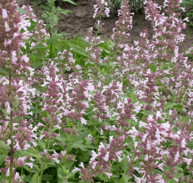 Dawn to Dusk - Eine Sorte, die für ihre attraktiven Blütenstände und ihren geringen Pflegeaufwand beliebt ist. Es ist ein mehrjähriges Kraut mit dichtem Wuchs und aufrechten Stängeln. Sie wird in der Regel etwa 70-90 cm hoch. Die Blätter sind graugrün, aromatisch, bis zu 7 cm lang und herzförmig. Die Blüten sind rosa und stehen in dichten Rispen. Sie sind attraktiv für Bienen, Schmetterlinge und andere Bestäuber. Sie blüht vom späten Frühjahr bis zum Frühsommer, wobei die Hauptblütezeit im Mai bis Juni liegt.