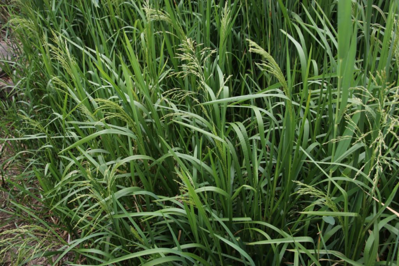 Ein Gras, das sich für den Anbau an den Ufern von Gewässern eignet. Es wird etwa 80 cm hoch und bildet kriechende Langtriebe. Die Blätter sind grün gefärbt. Das Blatt ist oben glatt und unten rau. Sie blüht in gelb-grünen Rispen, die 20-40 cm lang sind. Sie sind eine schöne Ergänzung für Teichufer.