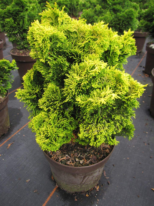 Diese zwergwüchsige, langsam wachsende Sorte hat flache, schuppige gelbgrüne Nadeln. Sie bevorzugt durchlässige, humose, leicht feuchte Substrate. Der Standort kann sonnig oder halbschattig sein. Sie wird in Steingärten, Heiden und Kübeln verwendet.