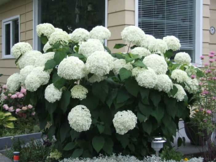Annabelle ist eine 180cm hohe Hortensie im Halbschatten mit perfekten runden weißen Blüten. Sie ist ein sommergrüner, aufrechter, reich verzweigter Strauch mit breit-ovalen, hellgrünen Blättern. Sie blüht von August bis zum Spätherbst. Gelegentlich bildet er im Herbst eine kleinere Anzahl kleinerer Blüten. Der geeignetste Standort für Baumhortensien ist halbschattig. Bei heißem Wetter empfehlen wir, sie mindestens ein- bis zweimal pro Woche kräftig zu gießen.