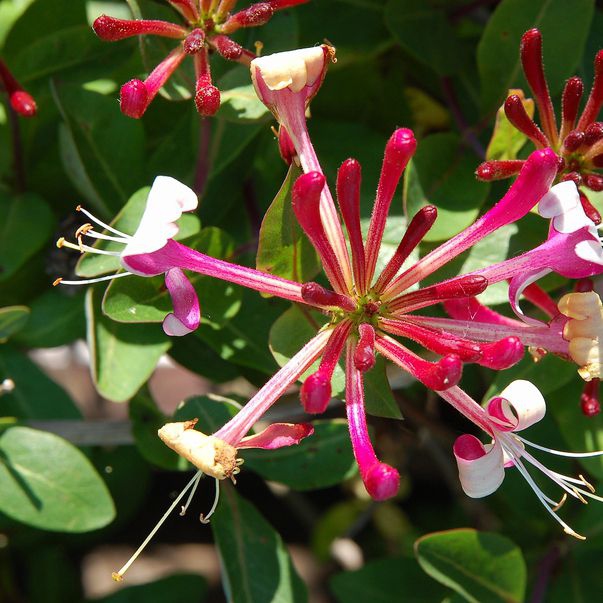 Es handelt sich um eine winterharte Kletterpflanze, die nicht zurückstirbt und auch sehr schön blüht. Sie hat ovale dunkelgrüne Blätter und Knospen mit aromatischen, violetten Blüten. Sie wird auch für die Bepflanzung an Pergolen, Mauern, Zäunen usw. verwendet. Sie wird 3-5 m hoch.