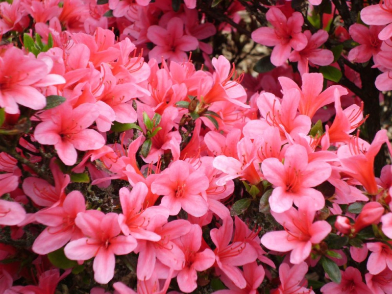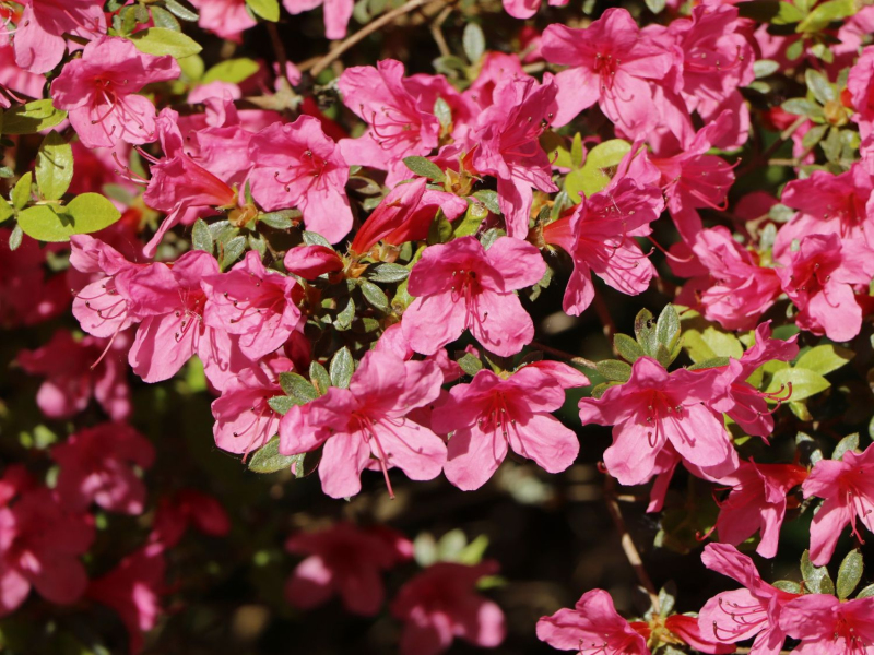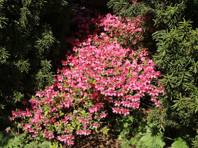 Diese Azaleen zeichnen sich durch eine hohe Winterhärte und eine lange, immergrüne Lebensdauer aus, da sie erst dann ihr Laub abwerfen, wenn die Temperaturen für längere Zeit unter -20°C fallen. Madame Van Hecke stammt aus einer belgischen Selektion. Sie trägt intensiv dunkelrosa, röhrenförmige Blüten, die von Mitte April bis Mitte Mai an der Pflanze erscheinen. Die Blätter sind mittellang, leicht zugespitzt und dunkelgrün.