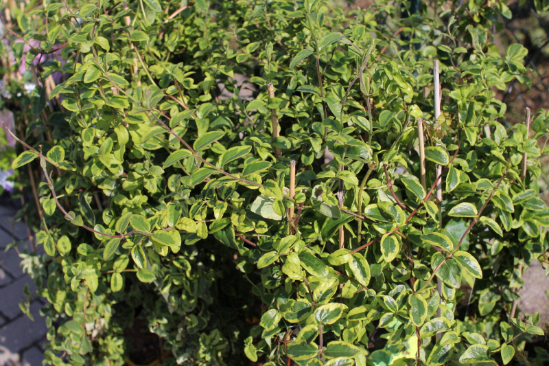 Lonicera japonica Kogel-mogel ist der lateinische Name eines niedrigen Strauches. Bei uns ist er als Japanischer Kogel-mogel bekannt. Er wird der Familie der Caprifoliaceae zugeordnet. Diese schöne Sorte, die bis zu 4 m hoch wird, hat einen jährlichen Zuwachs von 0,5 bis 1 m. Sie bildet zierliche, kleine, elliptische, unregelmäßig gelappte und grünlich-gelbe Blätter. Sie blüht von Juni bis Juli mit kleinen, duftenden, cremefarbenen, später orangefarbenen Blüten. Die Knospen sind dunkelrosa, im entfalteten Zustand cremerosa. Sie verblassen allmählich zu gelb-orange. Die Blüten werden durch kleine, schwarz-violette Beeren ersetzt, die Ende September, Anfang Oktober erscheinen. Sie braucht eine Stütze zum Wachsen.