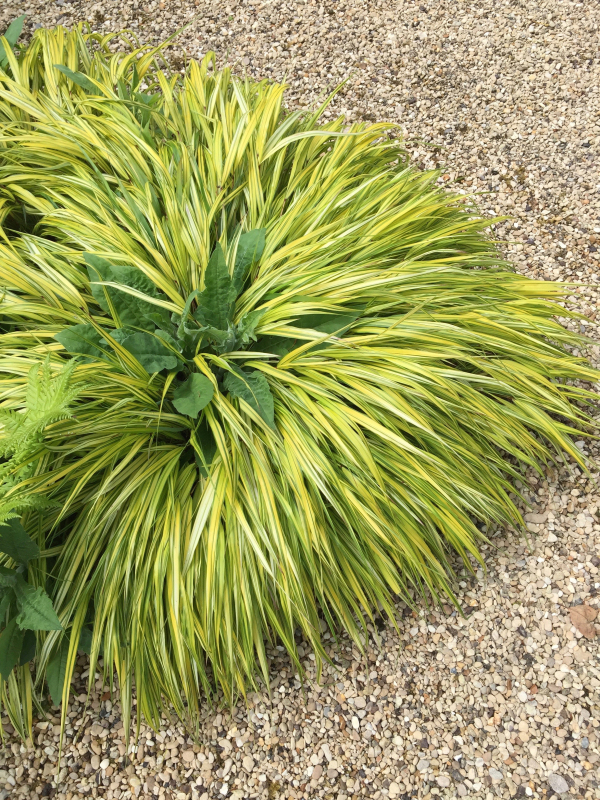 Hakonechloa macra Aureola ist seit langem eine der beliebtesten Ziergräser-Sorten. Sie wird besonders wegen ihres dichten Wuchses und ihres zuverlässigen Wachstums geschätzt, wobei sie auch im Unterholz einen durchgehenden Wuchs bilden kann. Die Blätter haben abwechselnd gelbe und grüne Längsbänder. Im Herbst dominiert eine ausgeprägte goldene Farbe.