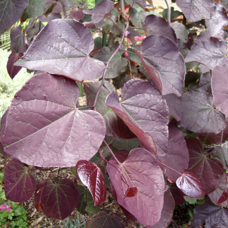 Ruby Falls ist eine überhängende Sorte mit prächtigen, tiefrosa Blüten im Frühjahr und später violetten Blättern. Die Laubfärbung wechselt im Herbst zu leuchtenden Orange-, Gelb- und Rottönen. Die Wuchshöhe der Sorte wird durch das Entfernen von Blütenblättern selbst bestimmt.
