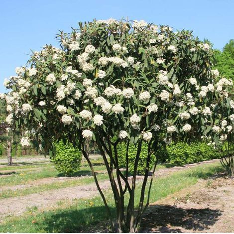 Durchaus verzweigter immergrüner Strauch mit kugelförmiger Krone. Wächst bis zu 3-4m hoch. Das Laub ist lang und dunkelgrün, die Blütenstände sind weiß. Er eignet sich für die Heckenpflanzung und verträgt kalkhaltige Böden gut.
