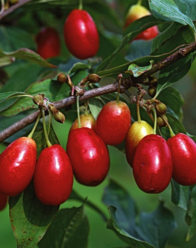 Vhodný aj do chladnejších oblastí. Plod veľký, červený, s podlhovastou kôstkou, kyselkavej chuti, v plnej zrelosti sladký. Zrelé plody sú tmavočervenej farby, ľahko sa pri zbere oddeľujú, pri prezretí opadávajú. Dužina je šťavnatá, sladko nakyslej, príjemnej chuti. Kôstka je väčšia, pravidelná, pretiahnutá.