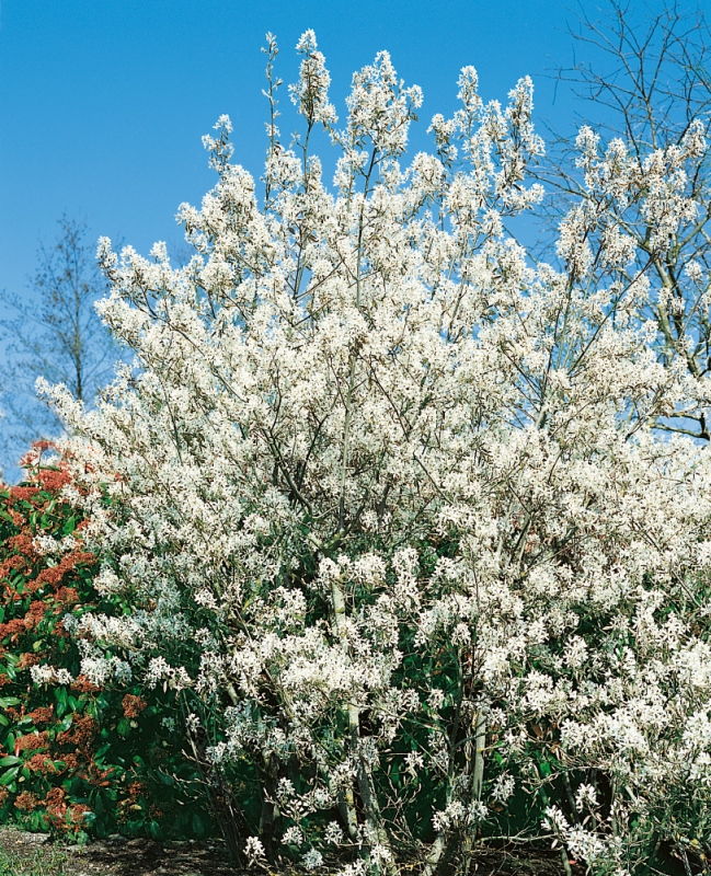 Die Blätter treiben mit einem bronzeroten Schimmer aus und verfärben sich im Herbst leuchtend orange bis rot. Die Blüten erscheinen in 8–10-blütigen Dolden. Die Früchte sind auch bei Vögeln sehr beliebt.