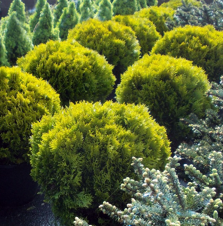 Schlanke kugelförmige Konifere, die bis zu 0,8 m hoch wird. Die Farbe der Zweige ist goldgelb. Sie bevorzugt einen luftigen, feuchten Boden und eignet sich aufgrund ihrer Statur für Steingärten, Beete und verschiedene Gefäße.