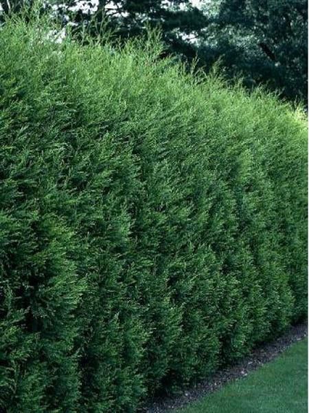 Die Leyland-Zypresse ist die am schnellsten wachsende Konifere, die sich für Hecken eignet. Sie wächst mit einer Geschwindigkeit von bis zu 1 Meter pro Jahr. Sie ist eine der beliebtesten Pflanzen für die Formgebung. Wenn sie frei wächst, entwickelt sie sich zu einem massiven, aufrechten, kegelförmigen Baum. Er hat dunkelgrüne Nadeln, die in flachen Büscheln angeordnet sind. Er verträgt eine gute Scherung.