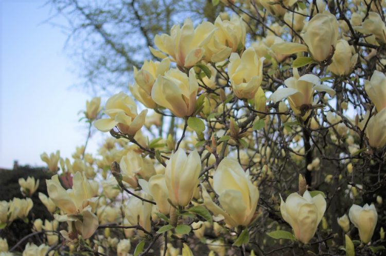 Magnolia YELLOW LANTERN ist ein kleiner bis mittelgroßer Laubbaum, der Mitte des Frühjahrs leuchtend zitronengelbe tulpenförmige Blüten hervorbringt. Die Blätter sind die ganze Saison über dunkelgrün und färben sich im Herbst kupfer-bronzefarben.