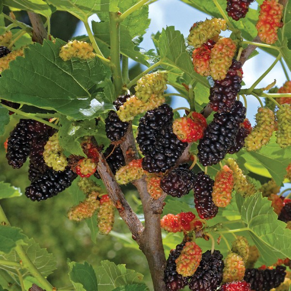 Morus alba Gerardis Dwarf ist ein kompakter, großblumiger Maulbeerbaum, der sich aufgrund seines kurzen Wuchses, der eine Höhe von 2 Metern erreicht, für kleine Gärten eignet. Die Sorte ist selbstbefruchtend. Die Früchte sind 3-4 cm groß, bei Vollreife schwarz, saftig, süß und aromatisch im Geschmack. Sie ist eine anpassungsfähige Sorte an die klimatischen Bedingungen. Die Maulbeere hat medizinische, entzündungshemmende Eigenschaften, nicht nur die Früchte, sondern auch die Blätter oder die Rinde werden verwendet.