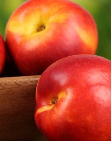 Frucht: sehr groß, gelb-rot, saftig, mit gelbem Fruchtfleisch, sehr schmackhaft
