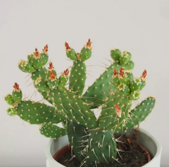 Opuncia ist eine niedrige, stachelige Sukkulentenart, die vor allem auf dem amerikanischen Kontinent zwischen Mexiko und Kanada wild vorkommt. Die runden Blätter des Feigenkaktus sind meist 5-10 cm breit. Er blüht mit gelben Blüten. Kaktusfeigen bevorzugen sonnige und windgeschützte Standorte, sie können im Sommer auch im Freien stehen, müssen aber aufpassen, dass sie an Regentagen keine Staunässe bekommen. Im Winter eignet sich der Kaktusfeigenbaum für einen frostfreien Standort, idealerweise bei Temperaturen unter 10°C.