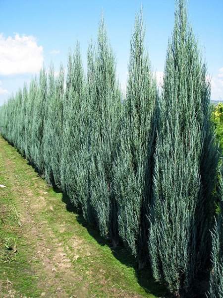Eine dichte, schlankstämmige Sorte mit silberblauen Nadeln. Es ist ratsam, die Seiten zurückzuschneiden, solange die Pflanze jung ist, um die Kronendichte zu erhöhen. Sie wird bis zu 4m hoch und ist sehr anspruchslos, sie eignet sich für luftige Böden.