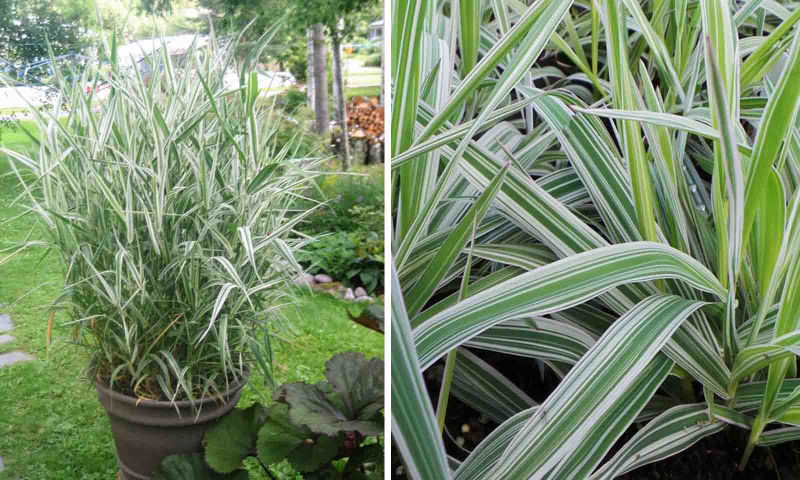Phalaris arundinacea Picta ist eine sehr beliebte Sorte in Ziergärten und Parks. Die Blätter sind mit grünlich-weißen Bändern verziert, die sich vertikal abwechseln.
