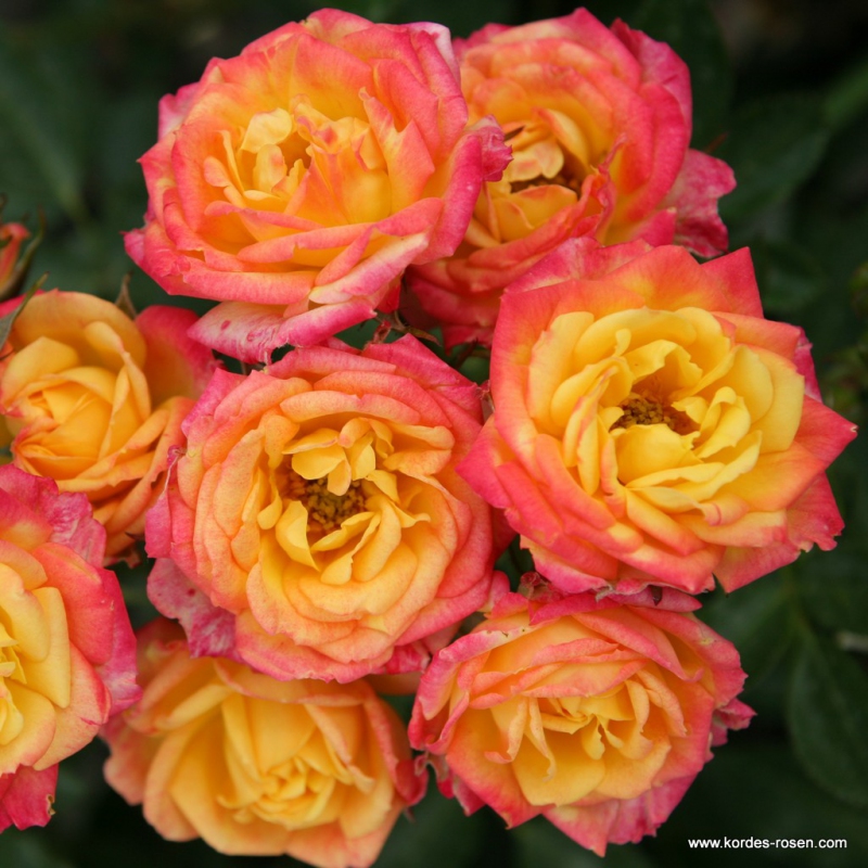 Miniaturrosette in attraktiver Blütenfarbenkombination mit gelber Mitte und rotem Blütenrand, auch hervorragend für Container geeignet.