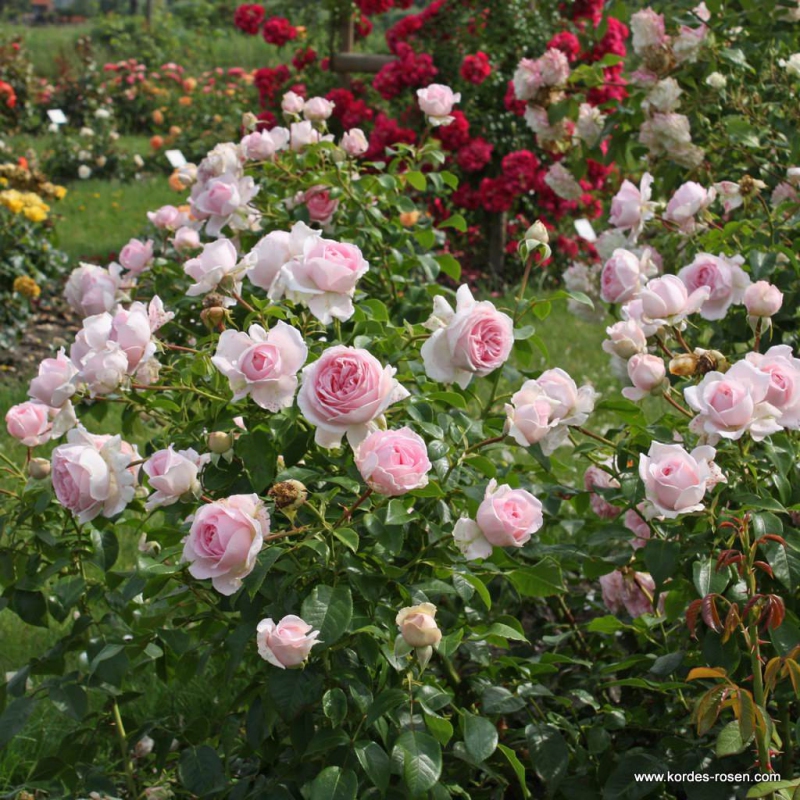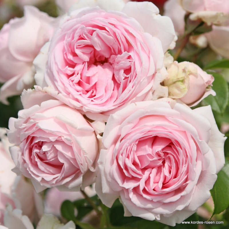 Ein Mitglied der TALKING ROSES Kollektion. Ihre runden rosa-silbernen Blüten bilden einen schönen Kontrast zu dem dunkelgrünen, sehr gesunden Laub. Da diese Sorte relativ spät im Jahr blüht, kann sie die Lücke zwischen der Blüte anderer Rosensorten füllen. Wetterfeste Sträucher, nostalgische Blüten, hohe Krankheitsresistenz. Mitglied der Fairy Tale Roses-Kollektion.