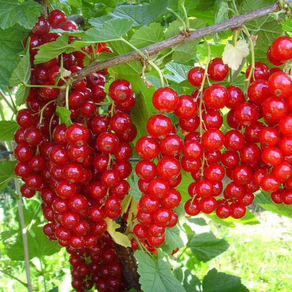 Früchte: Die Trauben sind lang, die Beeren groß, von tiefroter Farbe und säuerlich im Geschmack. Sie werden zu Säften und Marmeladen verarbeitet. Gefrorene Früchte sind hellrot.
