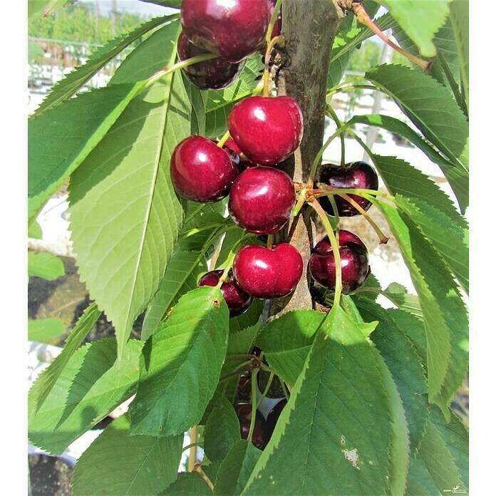 Säulenspalier ist die richtige Wahl, wenn Sie nicht genügend Platz in Ihrem Garten haben. Durch ihren schmalen, säulenförmigen und besonders langsamen Wuchs eignet sie sich für die Bepflanzung auf engem Raum. Die Kirsche Victoria trägt Anfang Juli mittelgroße Früchte, die süß und aromatisch schmecken. Die Sorte ist eine selbstbestäubende Art.