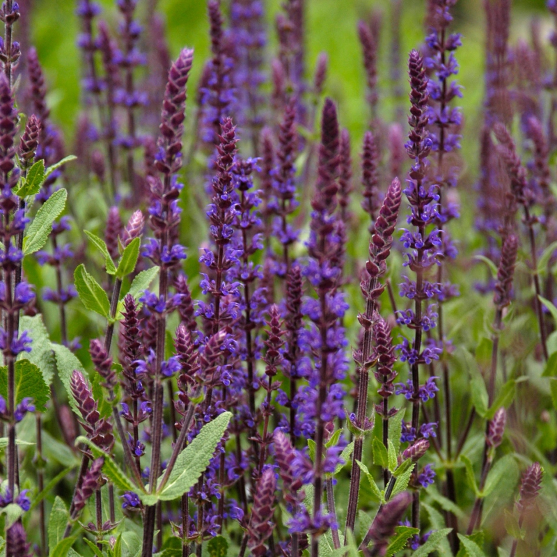 Eine Zierart des Salbeis, die nicht zum Verzehr geeignet ist, dafür aber mit ihrer reichen und lang anhaltenden Blüte entschädigt. Er ist eine beliebte Züchtung des höheren Salbeis und zeichnet sich durch seine üppigen violetten Blüten auf dunklen Stängeln aus.