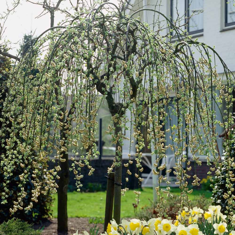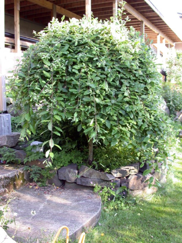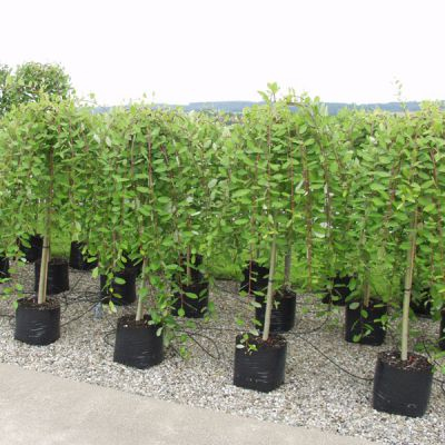 Hohe Stielweide mit schotenartig verdrehten, überhängenden Ästen. Reichlich verzweigt und winterhart. Bildet im Frühjahr attraktive Lammquartiere und ist im Sommer reichblättrig. Sie kann jederzeit zurückgeschnitten werden, besonders aber nach der Blüte. Geeignet als Solitär, als Domina, in Vorgärten, auch in Kübeln, in Beeten.