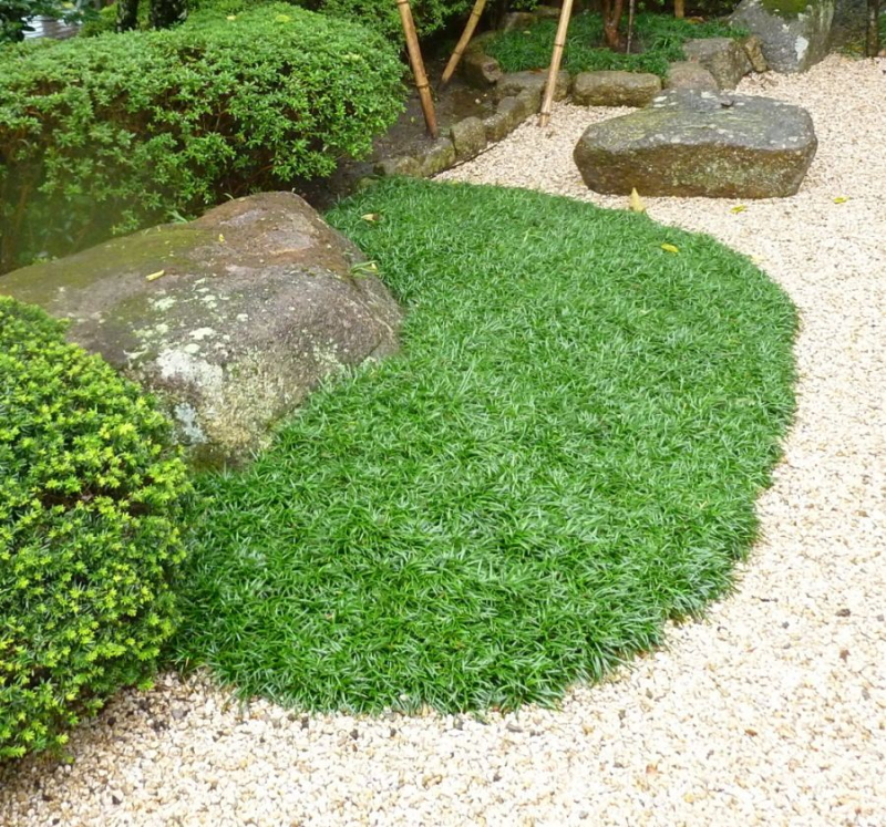Ophiopogon japonicus Minor, auch Nippel genannt, ist eine kompakte und langsam wachsende Sorte, die sich perfekt für kleinere Gärten oder Steingärten eignet. Die Pflanze bildet dichte Büschel aus schmalen, dunkelgrünen Blättern, die an Gras erinnern. Die Blätter werden 8-10 cm lang und fühlen sich fest und glänzend an. Im Sommer können kleine weiße bis hellviolette Blüten erscheinen, die unscheinbar sind, aber der Pflanze einen subtilen Charme verleihen.