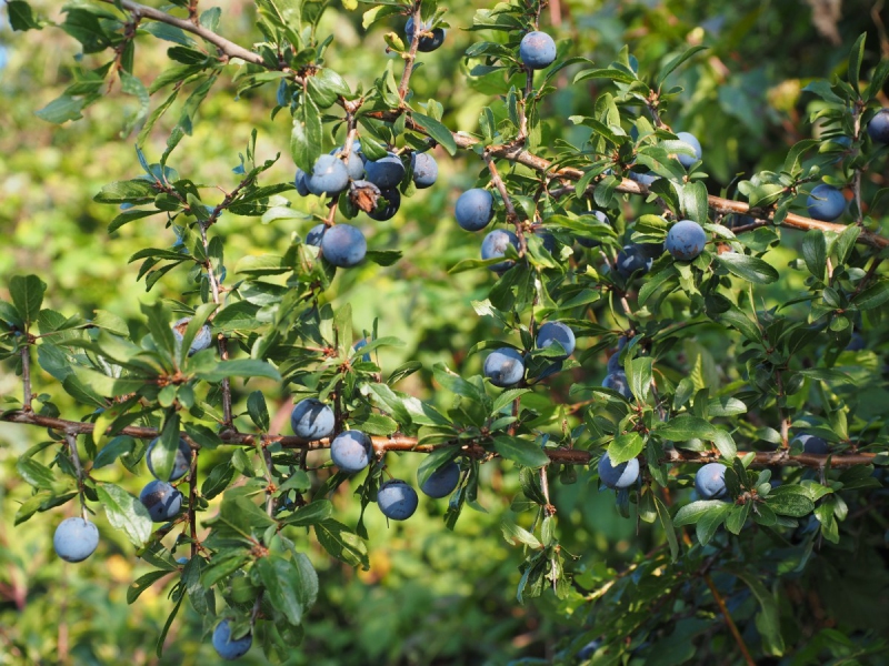 Bemerkung: Ein sehr verzweigter, widerstandsfähiger Strauch mit dicken Dornen, die Früchte sind blauschwarz und bekommen erst nach den ersten Frösten einen süßen Geschmack. Auch die Blüten werden geerntet, wirken harntreibend und helfen bei Verdauungsproblemen. Aus den Früchten werden Wein, Marmelade, Schnaps und Säfte hergestellt.