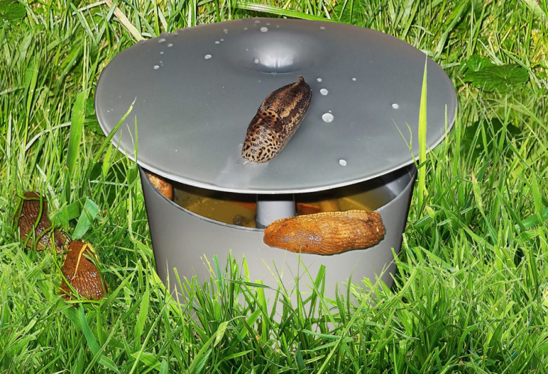 - Es handelt sich um einen Polypropylen-Behälter mit einem Dach zur Bekämpfung von hartnäckigen Schnecken ohne den Einsatz von Chemikalien.