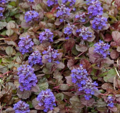 Sie bevorzugt feuchtere und nährstoffreichere Böden, meist an halbschattigen Standorten, an den Rändern von Wasserläufen und in Laubwäldern. Sie wächst von den Niederungen bis zum oberen Waldrand. Sie bildet bodenständige Blattrosetten, von denen aus sie sich durch luftige Ausläufer in die Umgebung ausbreitet. Sie eignen sich besonders für Unterholz, als Rasenersatz, für die Pflanzung in größeren Gruppen und zur Bildung verschiedener Rabatten. Sie sind auch für Steingärten und verschiedene Gefäße geeignet. Sie sind standort- und bodenschonend. Sie bevorzugen feuchte und nasse Böden an einem leicht sonnigen bis schattigen Standort. Sie hat leicht gewellte, weiß-silbergrüne Blätter, die sich im Schatten und in der Kälte rosa-violett verfärben. Sie blüht ab April mit blauen, in einer Ähre angeordneten Blüten.
