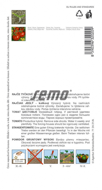 Halbharte Kunststoffhybride mit vielseitiger Verwendung und stabilen Erträgen. Die 80-100 g schweren Früchte sind kugelförmig bis flachkugelförmig, glatt, bei Reife dunkelrot. Benötigt ein ausgewogenes Feuchtigkeitsregime, um ein Aufplatzen der Früchte zu verhindern.