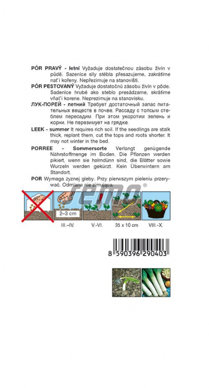 Halbharte Sorte, geeignet für die Ernte im Spätsommer und Frühherbst. Pflanze mittelhoch. Blätter halbdiametrisch, mittelgrün, mittel bis stark sitzend. Stängel mittellang, mittelgroß bis groß im Durchmesser, mit schwacher Verlängerung in die Zwiebel. Die Länge des verzehrbaren Teils beträgt 40-45 cm. Die Wachstumszeit ab Aussaat beträgt 155-165 Tage. Aussaat zur Vorsaat von Januar bis April, Pflanzung ab April.