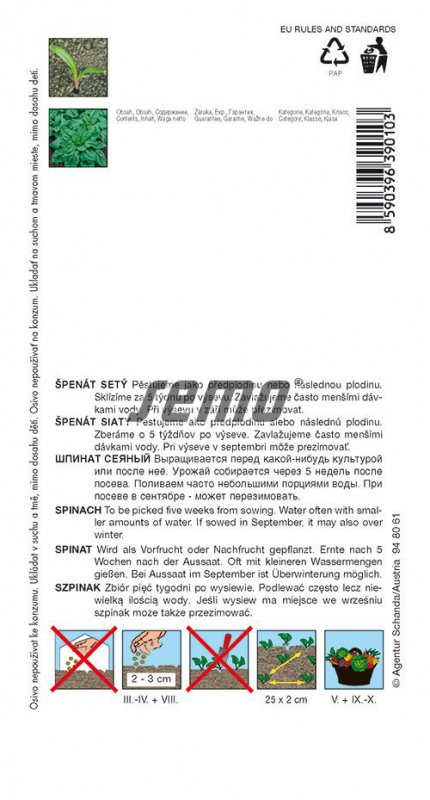 Späte Sorte, geeignet für Frühjahrs- und Herbsternte. Die Pflanze ist mittelstark bis stark mit halbaufrechten bis aufrechten Blättern. Diese sind oval mit einer abgerundeten Spitze, hellgrün, leicht blasig. Sie hat eine gute Frostbeständigkeit.